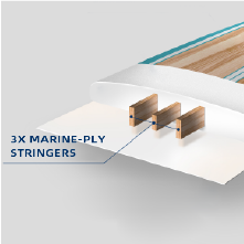 Triple wood stringers give the foam core greater longitudinal strength, rigidity and controlled flex. Our stringers are cut with the rocker profile and run parallel to the rails down the board.