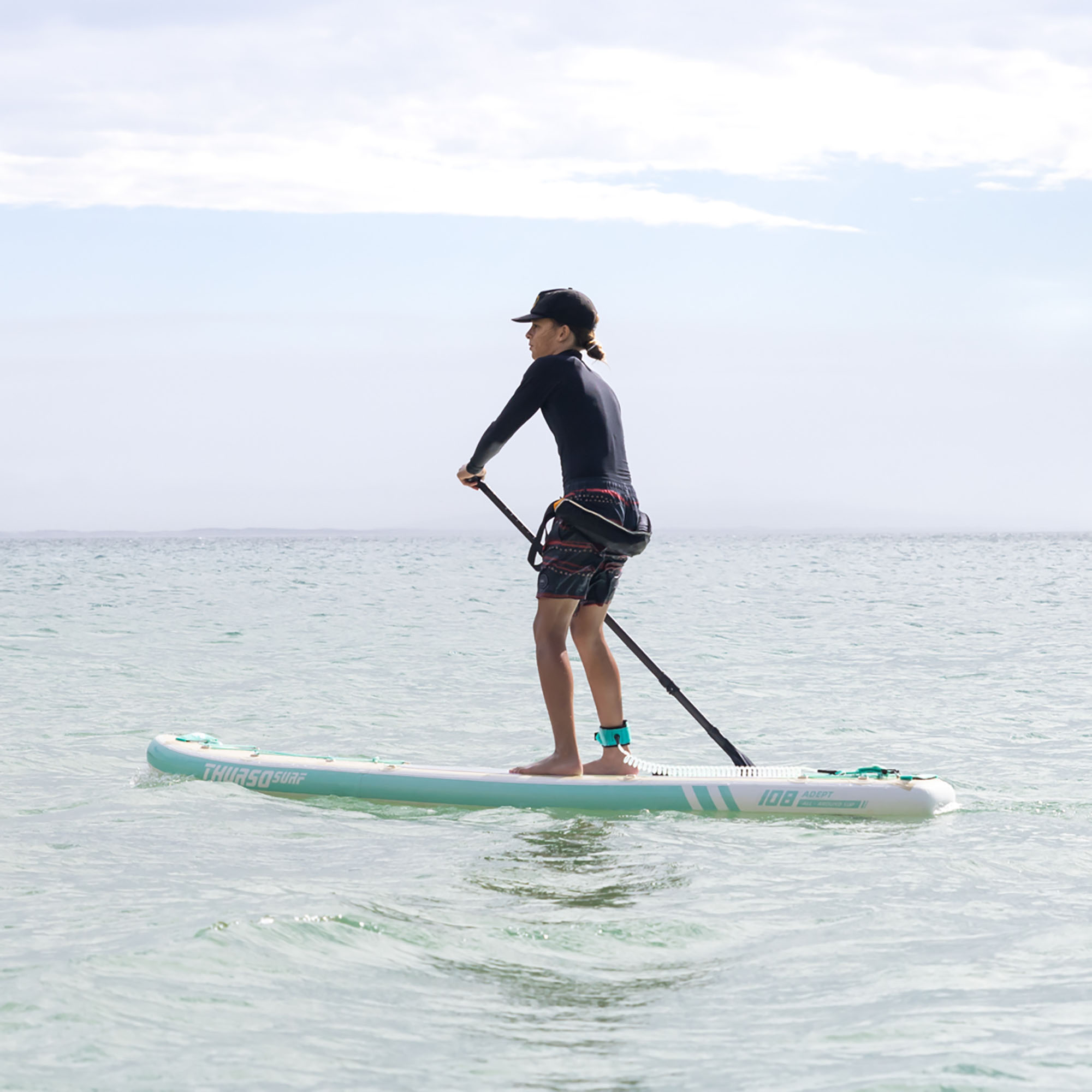 Unlike most paddle boards labeled “youth paddle board” or “junior SUP”, the Adept is fully-featured paddle board for youth with rigging front and rear, loads of D-rings for accessories and attachments like coolers, a kayak seat and more. Aspiring YouTubers will love the action cam mount! This is no children’s toy. It’s built with the same high tech materials and construction as our adult paddleboards and matches them in performance, safety, and stability. As a lightweight SUP board tailored for teenagers, it accelerates faster, is more maneuverable, and is easier to carry than full-sized SUPs. Plus, designed as a 9 ft paddle board, there’s plenty of room to grow. As kids get bigger a few years down the line, the Adept will still see action as a nimble surf SUP or or family fun paddle board.