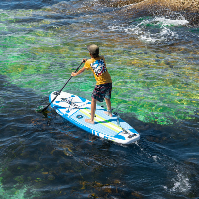 To keep up and stay safe on family paddles, kids need a board designed specifically for young paddlers, not a water toy. The junior paddle board specifically designed with young paddlers in mind. Perfect for kids from 5yr old and beyond, this kids paddle board combines the stability needed for beginners with the maneuverability that smaller paddlers require. Unlike generic water toys, the Prodigy Junior stand up paddle board is constructed to the same high standards of quality and safety as our full-sized boards, ensuring a safe and enjoyable experience on the water.Its all-around shape is extra wide in the middle for the stability new paddlers need, and tapered at the tail so it’s easy to maneuver and fun to ride. It comes with an adjustable paddle that’s the right fit for smaller limbs and it’s easy to transport in its own carry bag.