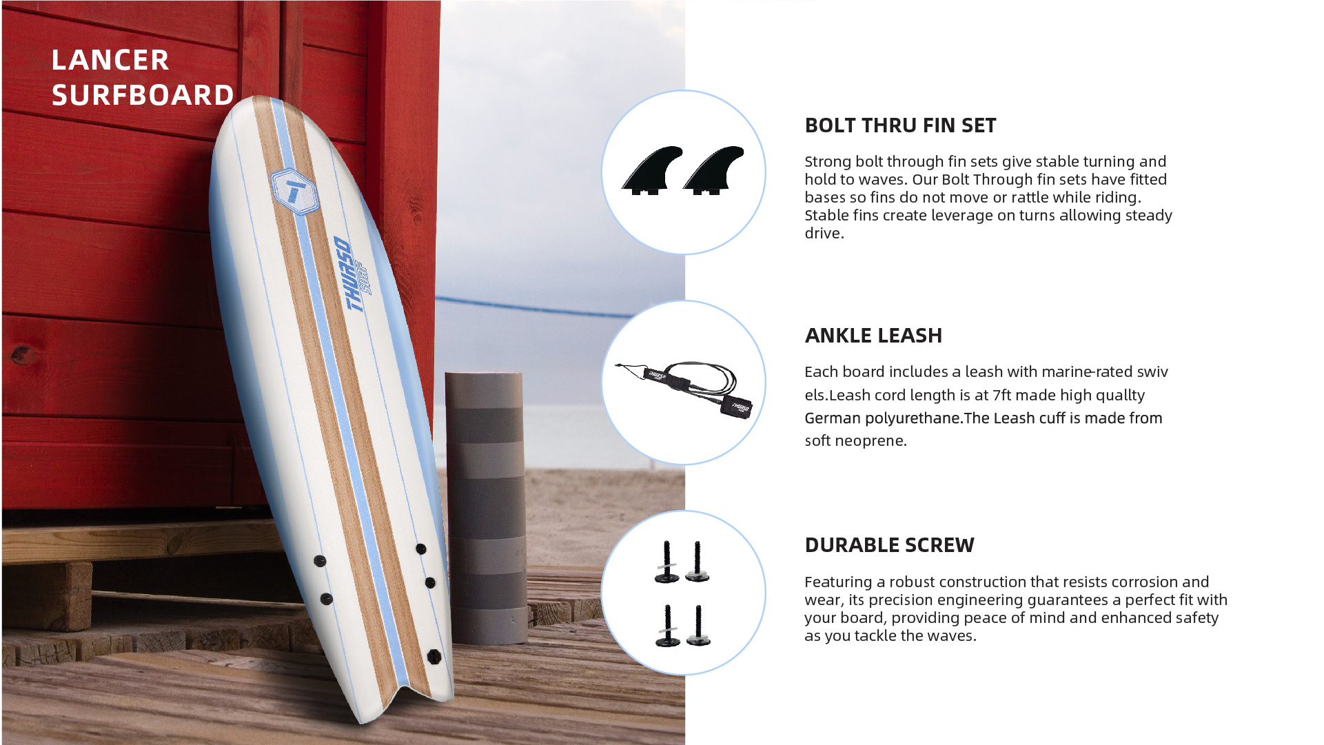 Hit the waves with THURSO SURF’s Lancer, a premium 5 ft 10 surfboard designed for all skill levels. This foam top surfboard delivers unparalleled buoyancy and stability, thanks to its high-density EPS core and durable IXPE deck. Ideal for those seeking a blend of performance and convenience in a foam surf board. Make every surf session unforgettable with this top-tier soft surfboards.